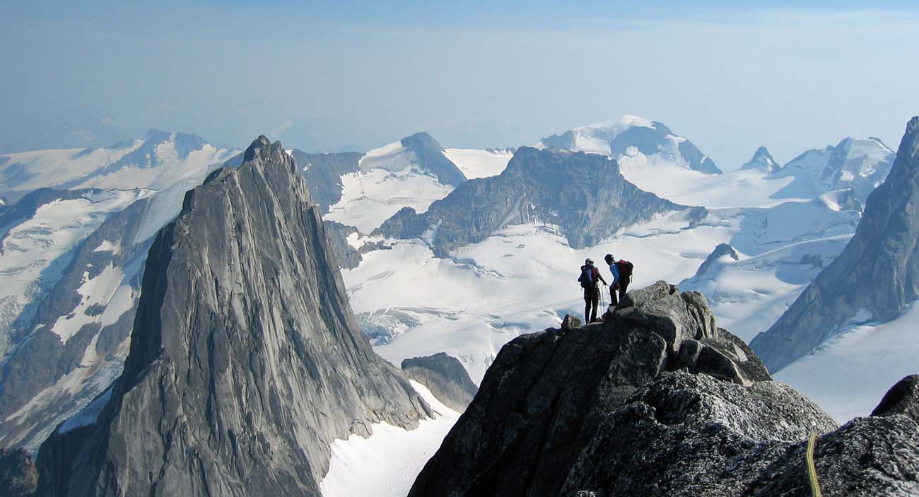 The key word is: Go light! With the glacial approaches, you often have to carry mountaineering equipment through technical rock routes, namely for trips like the NE ridge of the Bugaboo spire.