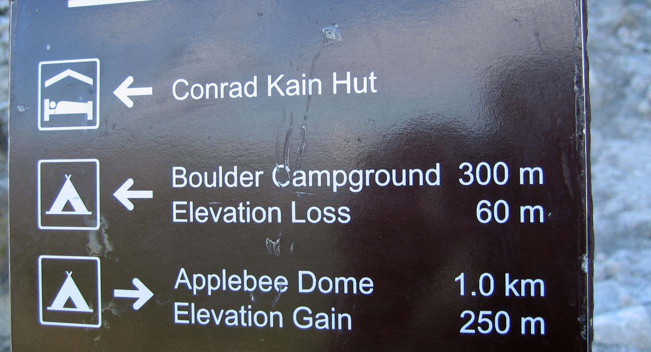 Camping is restricted to the Boulder Camp site (2170m, 8 sites, 5 minutes down from the Kain Hut) or more popular, the Applebee Camp (2480m, 250 vertical meters and 1 km up from the Kain Hut, 20 sites). Please pay your fees to the Kain Hut custodian or self register in the hut in the absence of a custodian. Fees are about $ 5 /person/night.