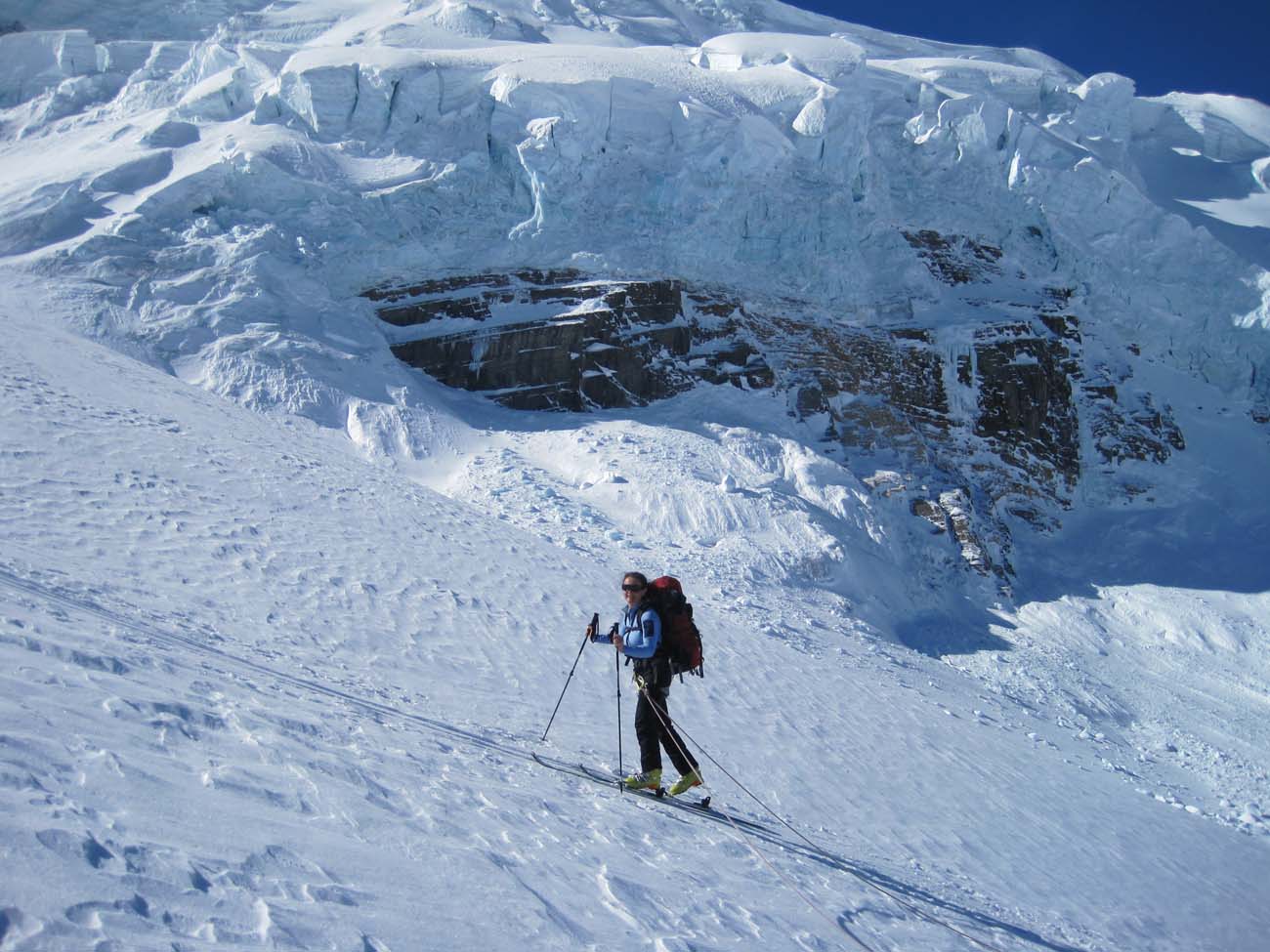 Depending on the conditions, we might have to rope on while skiing both up and downhill.